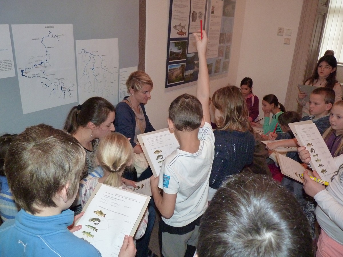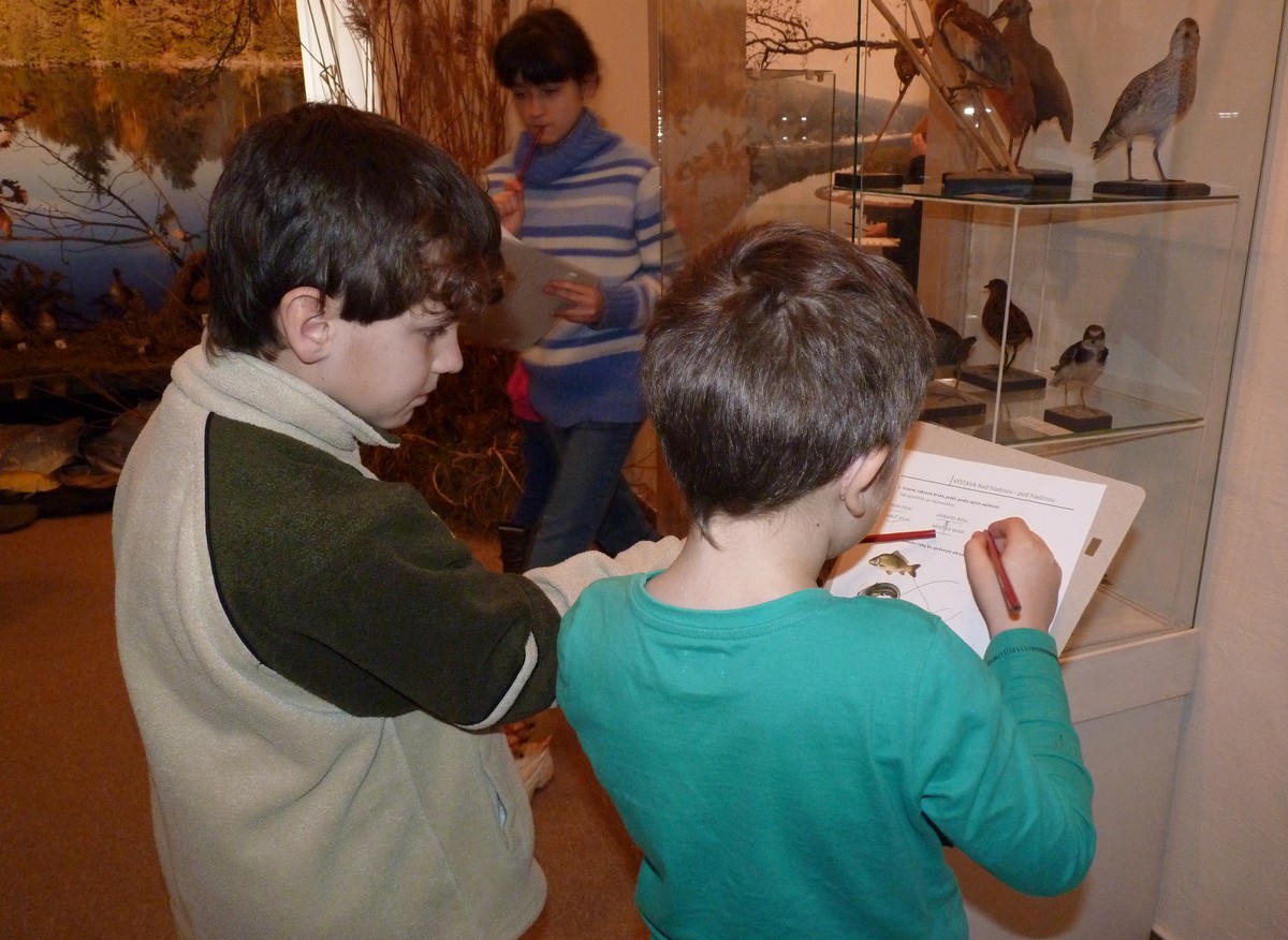 Výstava Nad hladinou – pod hladinou seznámí žáky s živočichy, kteří žijí ve vodě i u vody. Uvidí rozmanité druhy ryb, ptactva, obojživelníků a savců, s nimiž se mohou setkat v řekách, rybnících, přehradách, ale i na březích či v mokřadech. Dále jim expozice přiblíží povodí řeky Chrudimky a Novohradky, včetně zajímavých přírodních rezervací a památek. Čeká je komentovaná prohlídka, po které budou zpracovávat vybranou variantu pracovního listu i několik her – např. přiřazování vodních živočichů a rostlin za pomocí magnetky nad hladinu či pod hladinu rybníka, hledání správných ptačích párů nebo sladkovodních ryb podle jejich stínů, puzzle savců a obojživelníků,…