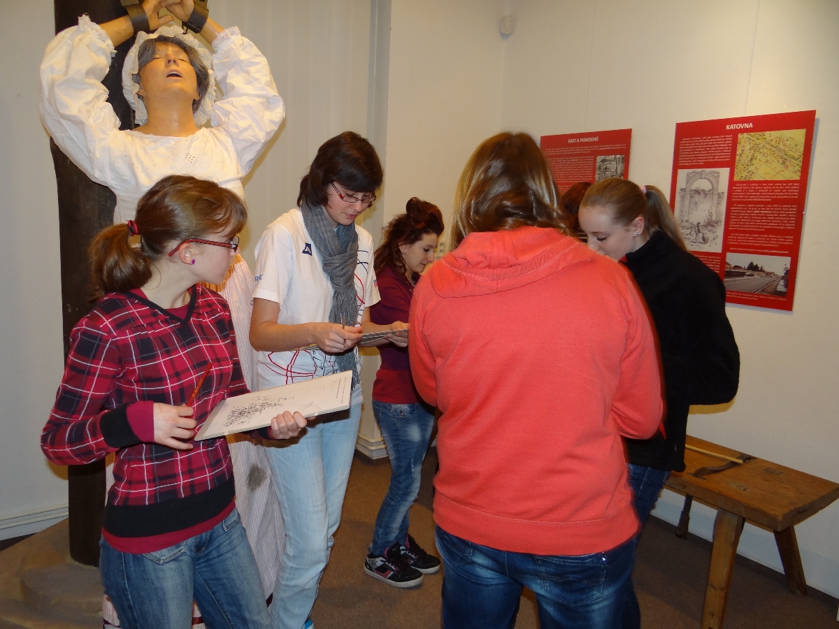 Úvodní seznámení s výstavou probíhá formou přednášky s dataprojekcí. V půlhodinovém povídání budou žáci seznámeni s dějinami skutečského hrdelního soudu i s vlastním obsahem pojmu hrdelní právo. Jednotlivé formy lehkých i těžkých trestů jsou přiblíženy za pomoci obrázků a příkladů ze skutečných případů (vybraných a podaných přiměřeně věku dané skupiny návštěvníků). Zmíněna bude osoba kata (pohodného) – jako důležitá postava, která ve Skutči žila. Kromě katovny budou také přiblížena místa, kde se právo soudilo a vykonávalo. Po přednášce budou žáci v expozici samostatně zpracovávat pracovní list. Ti, odvážnější si budou moci na závěr programu vyzkoušet několik dobových exponátů (např. katovské oblečení, španělskou botu, palečnice).